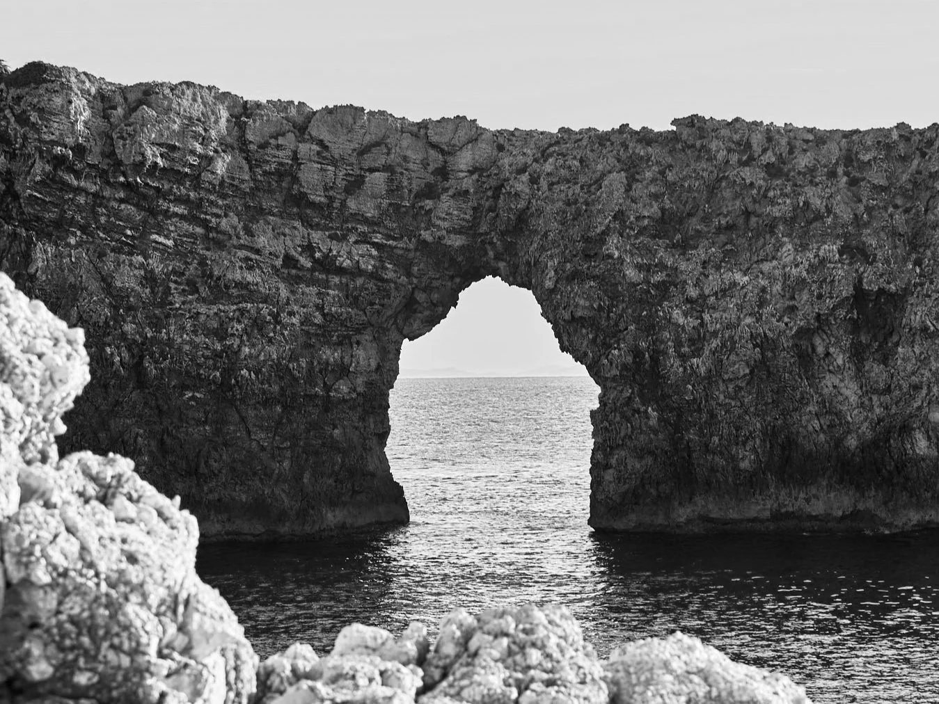 En medio del mar, en las proximidades de Ciudatella se alza un puente natural modelado por el paso del tiempo y la fuerza de las olas. Una estampa característica de la isla bajo la que navegan pequeñas y medianas embarcaciones admirando este milagro natural desde el que contemplar inmortales puestas del sol.
